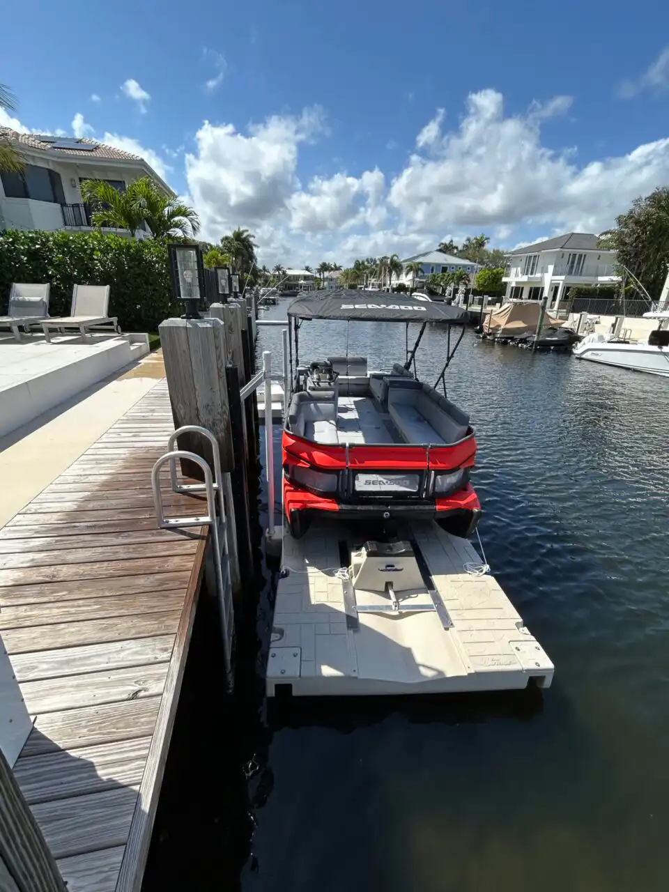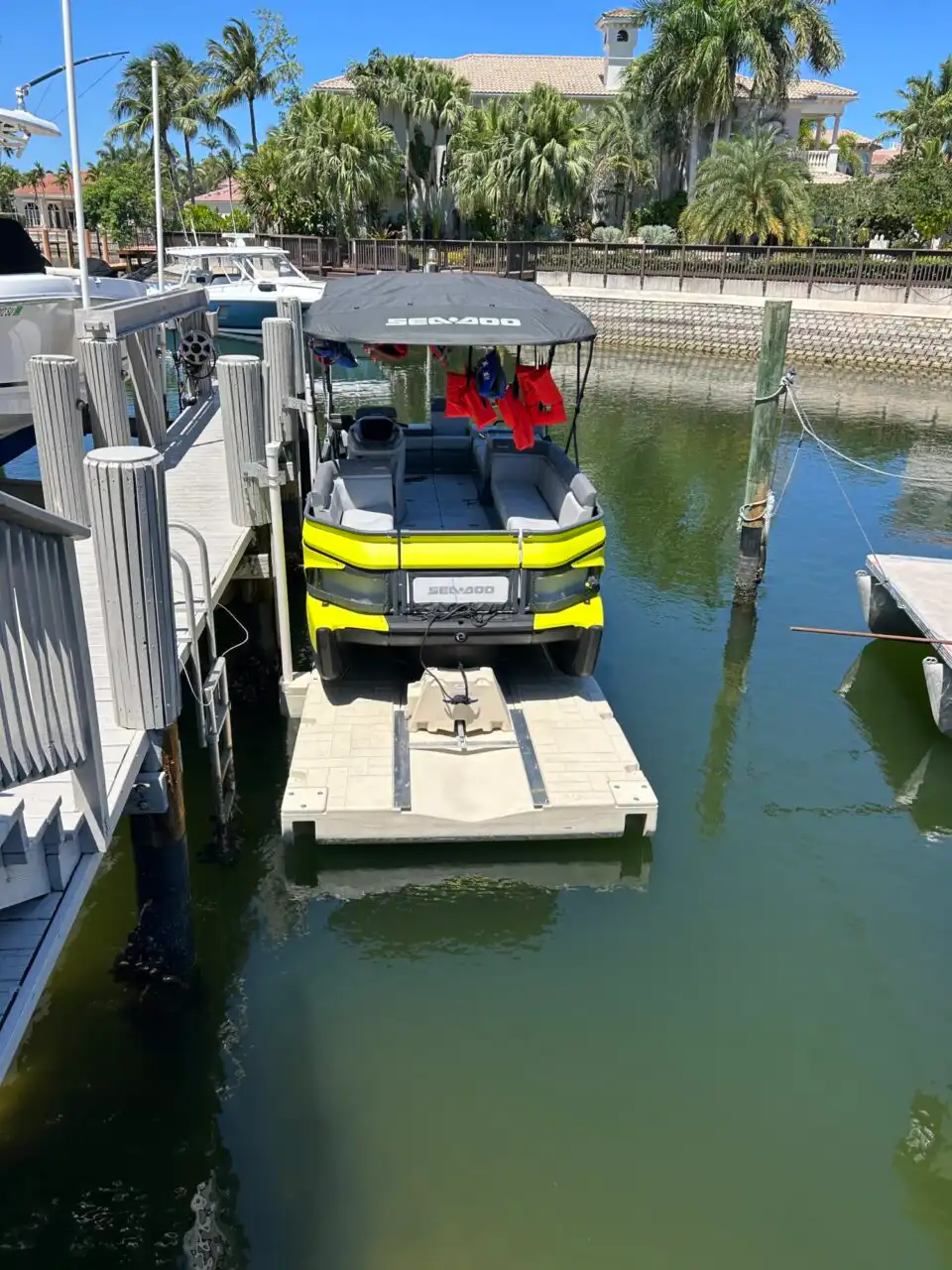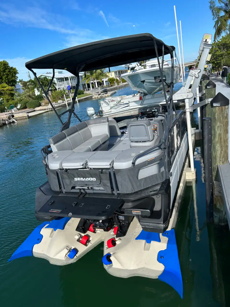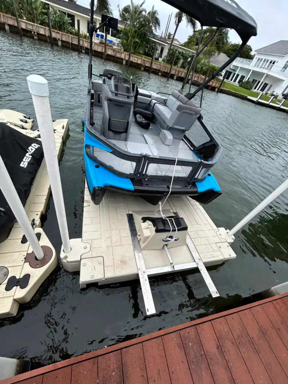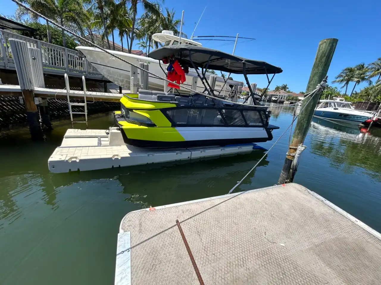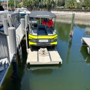 Here at Boat Float, we proudly offers premium Sea-Doo Switch docks designed to eliminate the frustration of traditional pontoon docking. As South Florida’s exclusive provider of the Wave Armor Switch Port, we help Switch owners streamline their waterfront access with a self-contained, battery-powered platform that does not require electricity, winches, or heavy lifting. These docking systems are built specifically for the unique shape and function of the Sea-Doo Switch, allowing for effortless drive-on storage, secure cradling, and remote-controlled launching.
